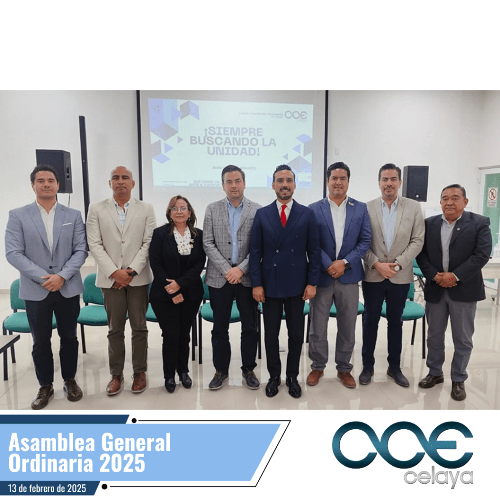 El liderazgo actual del CCE Celaya, encabezado por el presidente Mtro. Jorge Gámez Campos, lo complementa la Mesa Directiva para el período 2025-2026, con los vicepresidentes Armando Sojo Arroyo y Emmanuel Maldonado Martínez; Tesorera: Agripina Hernández Hernández; Secretario: Oscar Antonio Almanza Vega; Vocal Ejecutivo: Juan Daniel Prieto Delgado; Vocales de Vinculación: Luis Guillermo Morales Oliveros, E. Martín Bejarano Ferreyra y Luis Fernando Nieto HerreraArq. Emmanuel Maldonado Martínez. La mesa directiva del Consejo Coordinador Empresarial (CCE) de Celaya, refleja el compromiso continuo de la organización con la excelencia y la representación efectiva del sector empresarial.