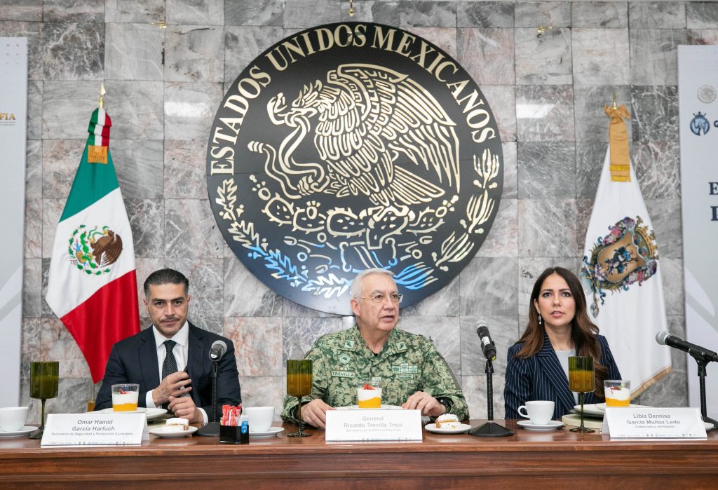 Irapuato, Gto., a 16 de mayo de 2025.- En un esfuerzo conjunto por fortalecer la seguridad en Guanajuato, la gobernadora Libia Dennise García Muñoz Ledo encabezó una reunión estratégica en la XII Región Militar de Irapuato con autoridades federales y estatales. Entre los asistentes destacaron Omar García Harfuch, secretario de Seguridad y Protección Ciudadana; el general Ricardo Trevilla Trejo, secretario de la Defensa Nacional; y representantes de la Guardia Nacional y del Centro Nacional de Inteligencia.