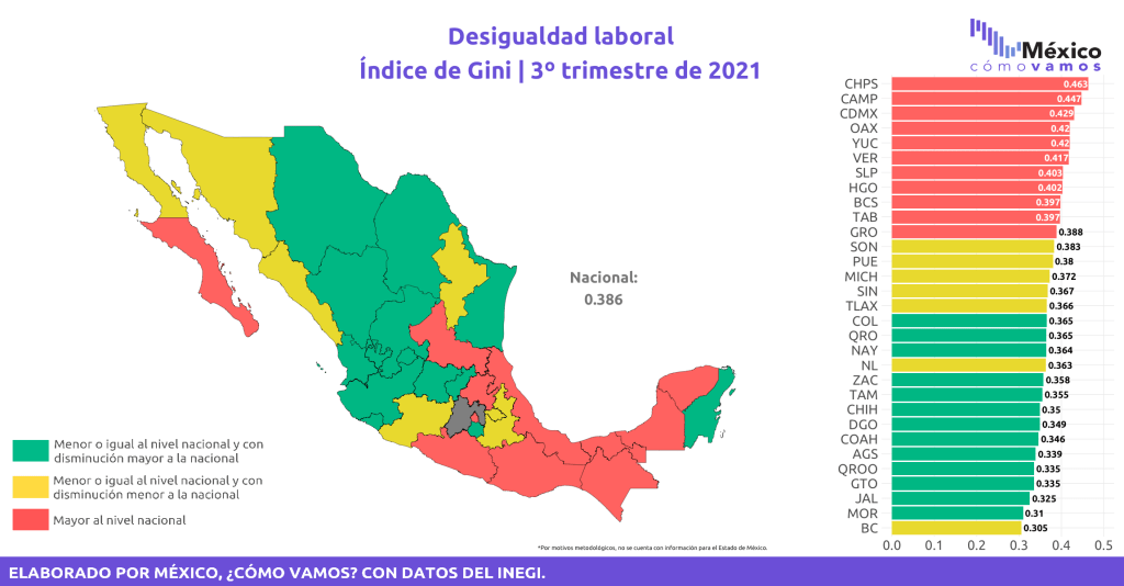 Guanajuato, Gto., a 29 de mayo de 2025.- Guanajuato ha logrado posicionarse entre los tres estados con menor desigualdad laboral en México, según datos de la plataforma «México, ¿cómo vamos?». Este logro se refleja en un coeficiente de Gini de 0.309 durante el Primer trimestre de 2025, el mejor resultado para la entidad desde 2005, y por debajo de la media nacional de 0.375.