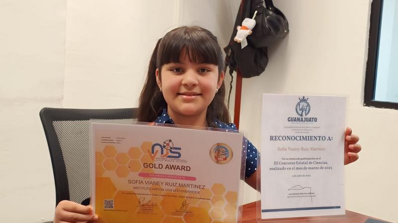 Todo comenzó en marzo, cuando la Secretaría de Educación lanzó la convocatoria estatal para la Olimpiada de Ciencias. Sofía, cursando quinto de primaria, se inscribió con curiosidad y entusiasmo,“Empecé como una experiencia y cuando vimos la convocatoria dije vamos a ver cómo es y en qué consiste y estudiamos y pasé a la final pero se me hizo muy fácil y me sobró tiempo de revisarlas y estar totalmente con mis respuestas”, explicó. Con este resultado, representó a Guanajuato en la Olimpiada Nacional VNJS 2025, que se llevó a cabo en línea el 30 de mayo en donde también obtuvo la medalla de oro, misma que la llevará a representar a México en la Olimpiada Nacional Juvenil de Ciencias VANDA en Shenzhen, China. Superó esta prueba con éxito, obteniendo el primer lugar estatal, y continuó ascendiendo en la contienda nacional donde resultó ganadora de la medalla de oro.