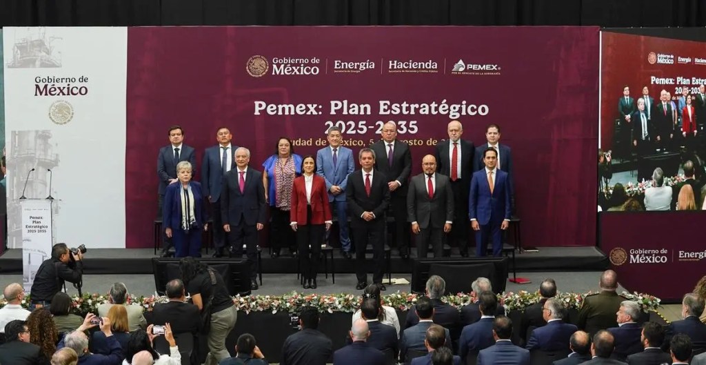 CDMX., a 6 de agosto de 2025.- El día de ayer en evento realizado en la sede de la Secretaría de Energía (Sener), la titular Luz Elena González Escobar presentó el Plan Estratégico 2025‑2035 de Petróleos Mexicanos (Pemex), acompañado por la Secretaría de Hacienda y Crédito Público (SHCP) y el director general de Pemex, Víctor Rodríguez Padilla.