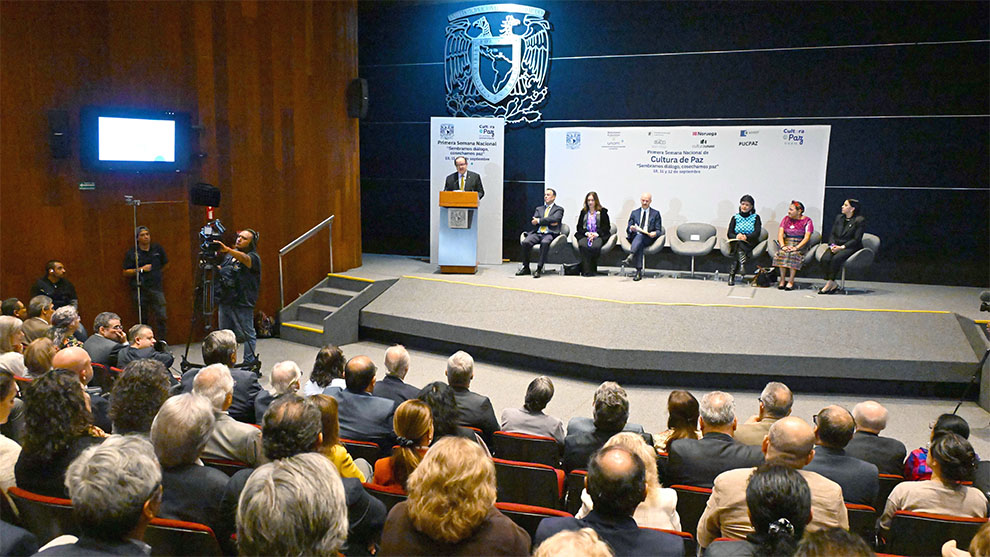 La Universidad Nacional Autónoma de México (UNAM), fiel a su compromiso con la formación integral de sus estudiantes y su papel como referente académico en América Latina, ha reforzado en los últimos meses sus programas y acciones orientadas a la construcción de una cultura de paz en el país. «La voluntad colectiva de nuestra Universidad para responder a una realidad marcada por violencias normalizadas, exclusiones persistentes y la incertidumbre que atraviesan las juventudes de nuestro país, es lo que nos convoca a inaugurar la Primera Semana Nacional de Cultura de Paz» , afirmó el rector de la Universidad Nacional Autónoma de México, Leonardo Lomelí Vanegas.