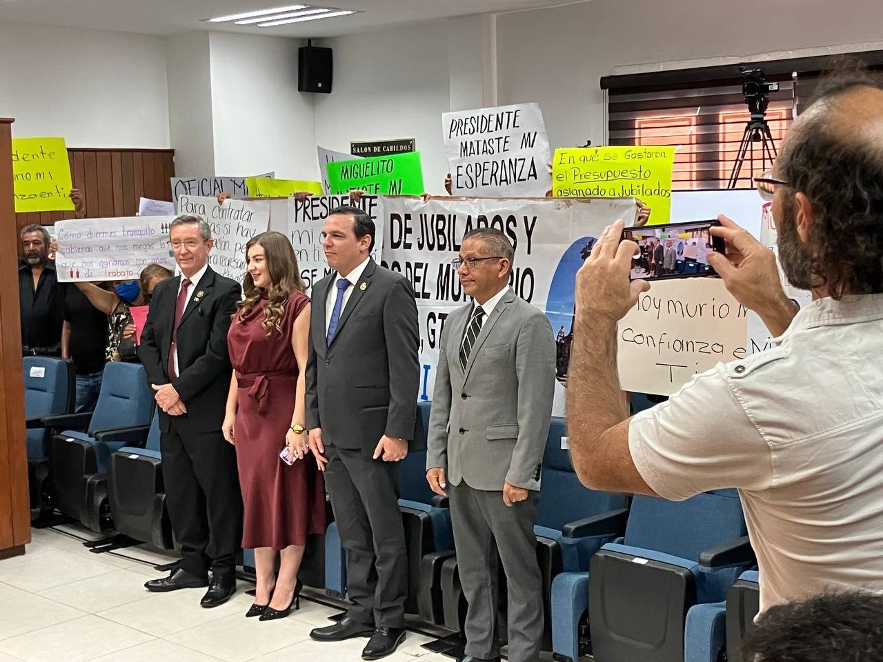 Durante el evento, se generaron también momentos de tensión: aproximadamente 80 jubilados del gobierno municipal protestaron, exigiendo atención a sus demandas, y acompañaron al presidente municipal desde la presidencia hasta la Calzada Independencia. Los jubilados manifestantes reclamaron lo que consideran falta de cumplimiento en ciertos compromisos hacia su sector.