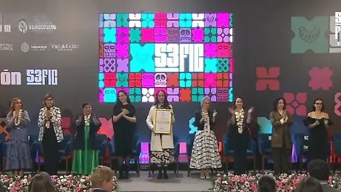 Durante el acto se entregaron los máximos reconocimientos del FIC. La Presea Cervantina fue otorgada a la dramaturga, actriz y directora tsotsil Petrona de la Cruz Cruz, y post mortem al periodista cultural Huemanzin Rodríguez Méndez—recibida en su nombre por su amigo Salvador Álvarez—en reconocimiento a su legado en el periodismo cultural.