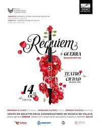 El día 14 de Octubre, en el Teatro de la Ciudad a las 19:30 hrs., dentro del Programa del Festival Internacional Cervantino se presentará una de las obras corales más conmovedoras del siglo XX: «Requiém de Guerra» de Benjamín Britten, con la participación de la Orquesta Sinfónica Juvenil Silvestre Revueltas, bajo la Dirección de Jesús Almanza y los Coros del Conservatorio de Celaya, bajo la dirección de Isabel Rico.
