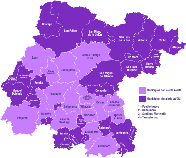 Celaya, Gto., a 22 de octubre de 2025.- El 25 de septiembre de 2024, la Comisión Nacional para Prevenir y Erradicar la Violencia contra las Mujeres (CONAVIM) notificó al estado de Guanajuato la declaratoria de Alerta de Violencia de Género contra las Mujeres (AVGM) (AVG) en 17 municipios de la entidad. La medida implicaba la activa intervención de los poderes Ejecutivo, Legislativo y Judicial estatales, así como de los municipios involucrados, con 21 recomendaciones y un plazo definido para atenderlas.