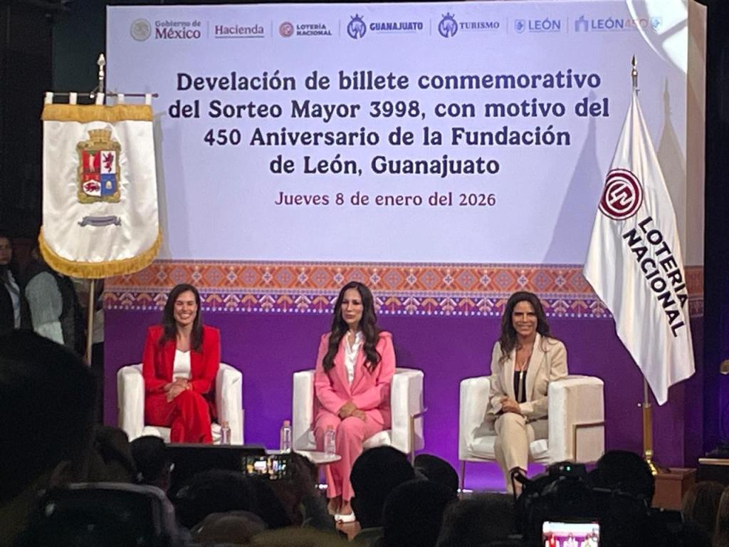 León, Gto., a 12 de enero de 2026.- En el marco de los festejos por los 450 años de la fundación de León, este día fue develado el billete conmemorativo de la Lotería Nacional, que se jugará el 20 de enero, una pieza gráfica que rinde homenaje a la identidad, la historia y el legado de una de las ciudades más emblemáticas del Bajío mexicano.