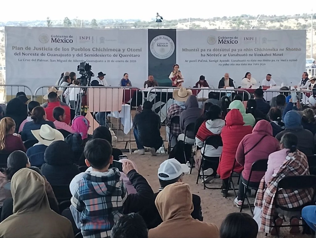 San Miguel Allende, Gto., a 19 de enero de 2026.- En una gira marcada por el simbolismo histórico y el diálogo directo con las comunidades, la presidenta de México, Claudia Sheinbaum, realizó una visita a los estados de Guanajuato y Querétaro, donde sostuvo encuentros con pueblos originarios chichimecas y otomíes, refrendando el compromiso de su gobierno con la justicia social, la memoria histórica y el reconocimiento pleno de los derechos de los pueblos indígenas.